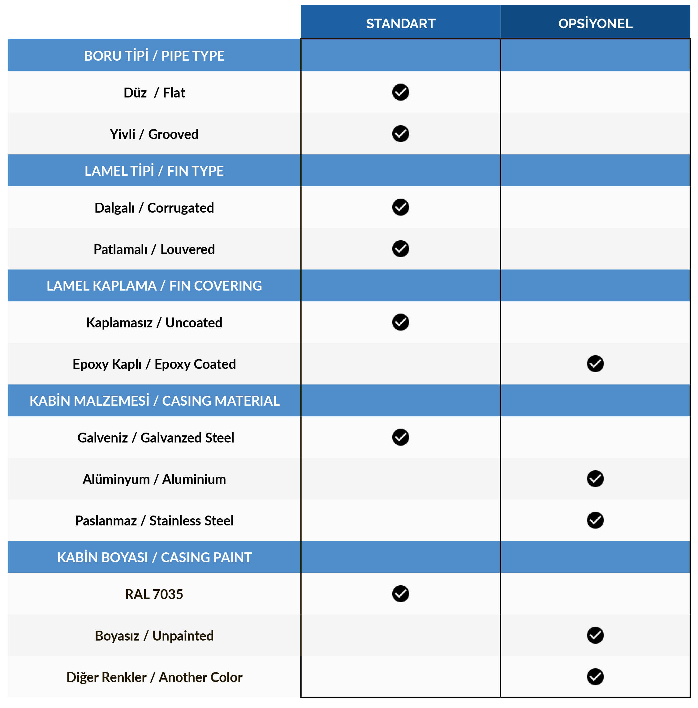 - Blueage Heat Exchanger farklı markalarda fan kullanma hakkına sahiptir. Bu duruma bağlı olarak fan bilgilerinde kısmi farklılıklar olabilir