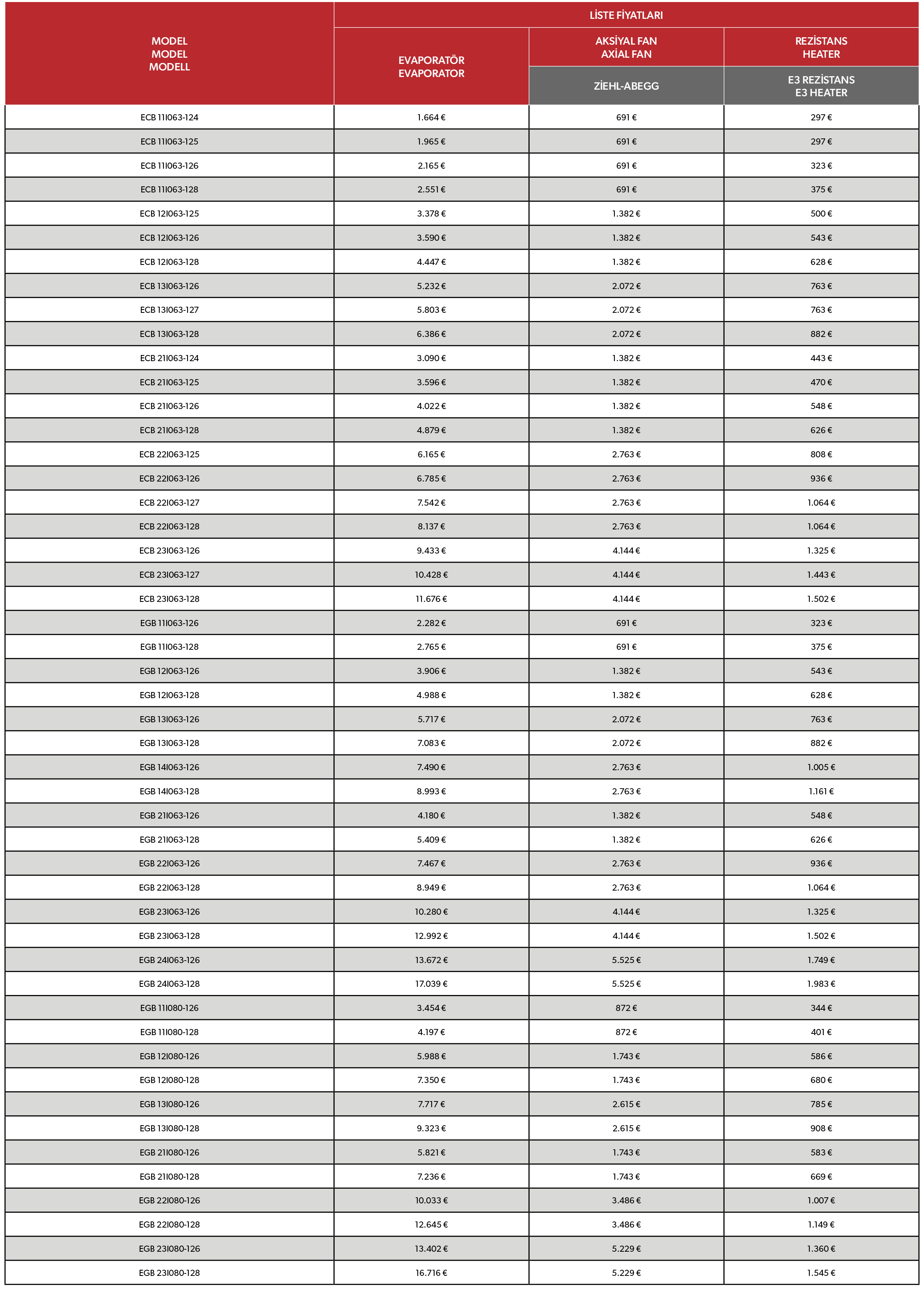 Ürünlerimizde kapasite değerleri R404A gazı için Eurovent standart şartları (EN 328) kabul edilerek hesaplanmıştır.